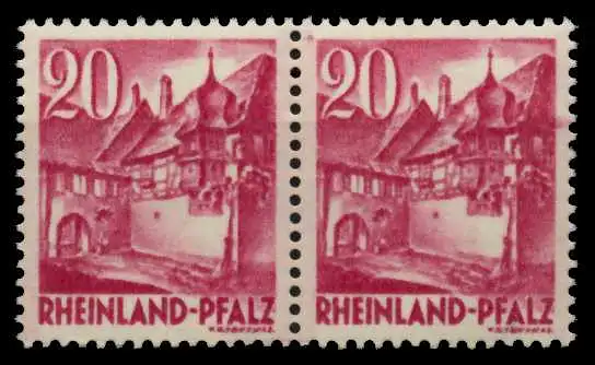 20 Pfg Freimarken Persönlichkeiten und Ansichten aus Rheinland-Pfalz, waagerechtes Typenpaar (III u. IV)
