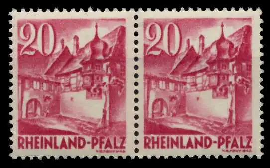 20 Pfg Freimarken Persönlichkeiten und Ansichten aus Rheinland-Pfalz, waagerechtes Typenpaar (III u. IV)