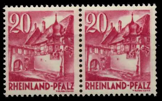 20 Pfg Freimarken Persönlichkeiten und Ansichten aus Rheinland-Pfalz, waagerechtes Typenpaar (III u. IV)