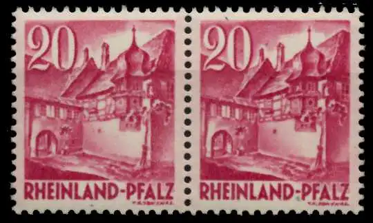 20 Pfg Freimarken Persönlichkeiten und Ansichten aus Rheinland-Pfalz, waagerechtes Typenpaar (III u. IV)
