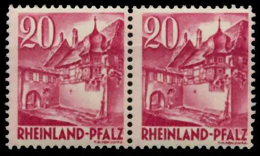 20 Pfg Freimarken Persönlichkeiten und Ansichten aus Rheinland-Pfalz, waagerechtes Typenpaar (III u. IV)