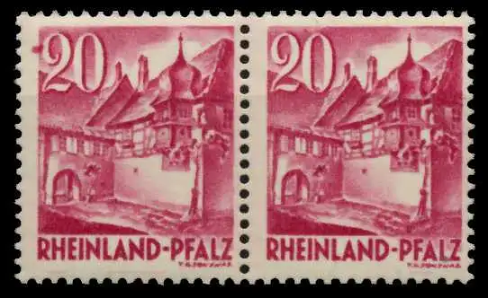 20 Pfg Freimarken Persönlichkeiten und Ansichten aus Rheinland-Pfalz, waagerechtes Typenpaar (III u. IV)