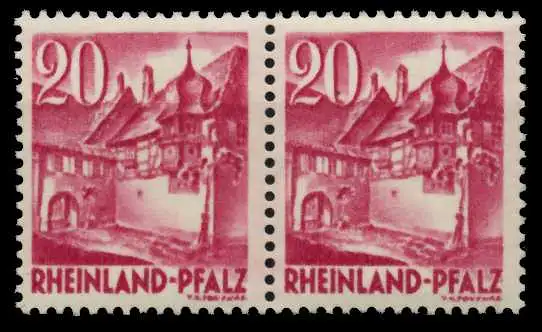 20 Pfg Freimarken Persönlichkeiten und Ansichten aus Rheinland-Pfalz, waagerechtes Typenpaar (III u. IV)