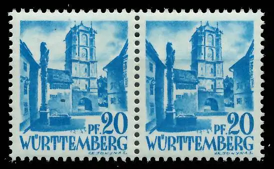 20 Pfg Freimarken Persönlichkeiten und Ansichten aus Württemberg 1. Ausgabe, waagerechtes Typenpaar aus der Reihe 7 und 8 des Bogens