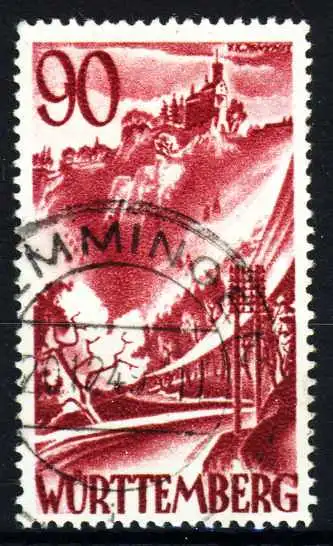 90 Pfg Freimarken Persönlichkeiten und Ansichten aus Württemberg, sign.