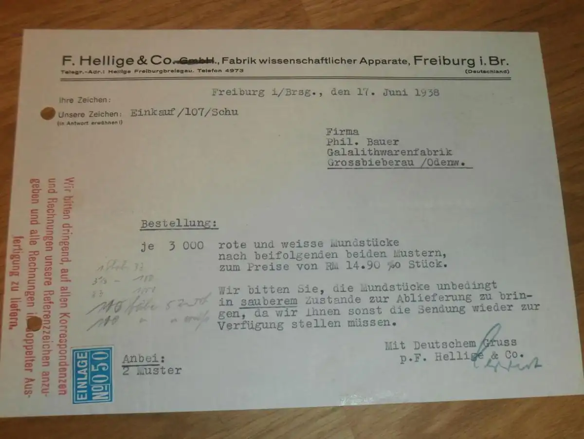 Fabrik wissenschaftlicher Apparate - F. Hellige & Co. in Freiburg i. Breisgau , 1938, Reklame / Werbung , altes Dokument