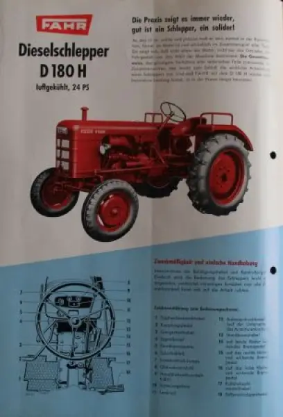 Fahr D 180 H Modellprogramm 1954 "Wie arbeiten Sie lieber" Traktorprospekt (4335)