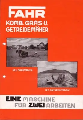 Fahr Komb. Gras- u. Getreidemäher Prospekt 1937