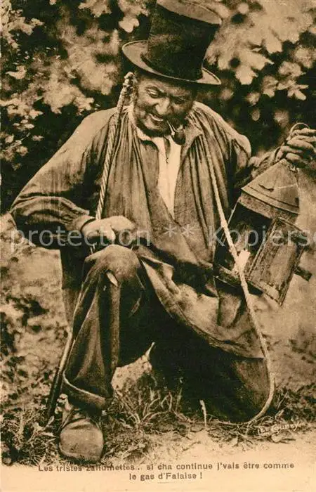 Falaise_Calvados Lanterne Mann Pfeife Hut Falaise_Calvados postalisch nicht gelaufen bis 1920 Erhaltung siehe scans [PaolaD17] PaolPID1