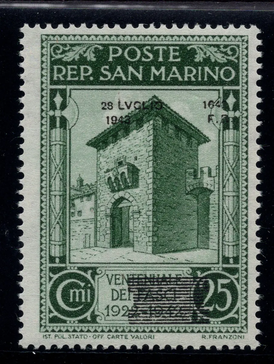 MNH - Vollgummi - Fall des Faschismus Cent. 25 n. 256ecc Aufdruck stark nach links verschoben, neuer perfekter Vollgummi - Kat. euro 130 Cod. 3109/WEB
