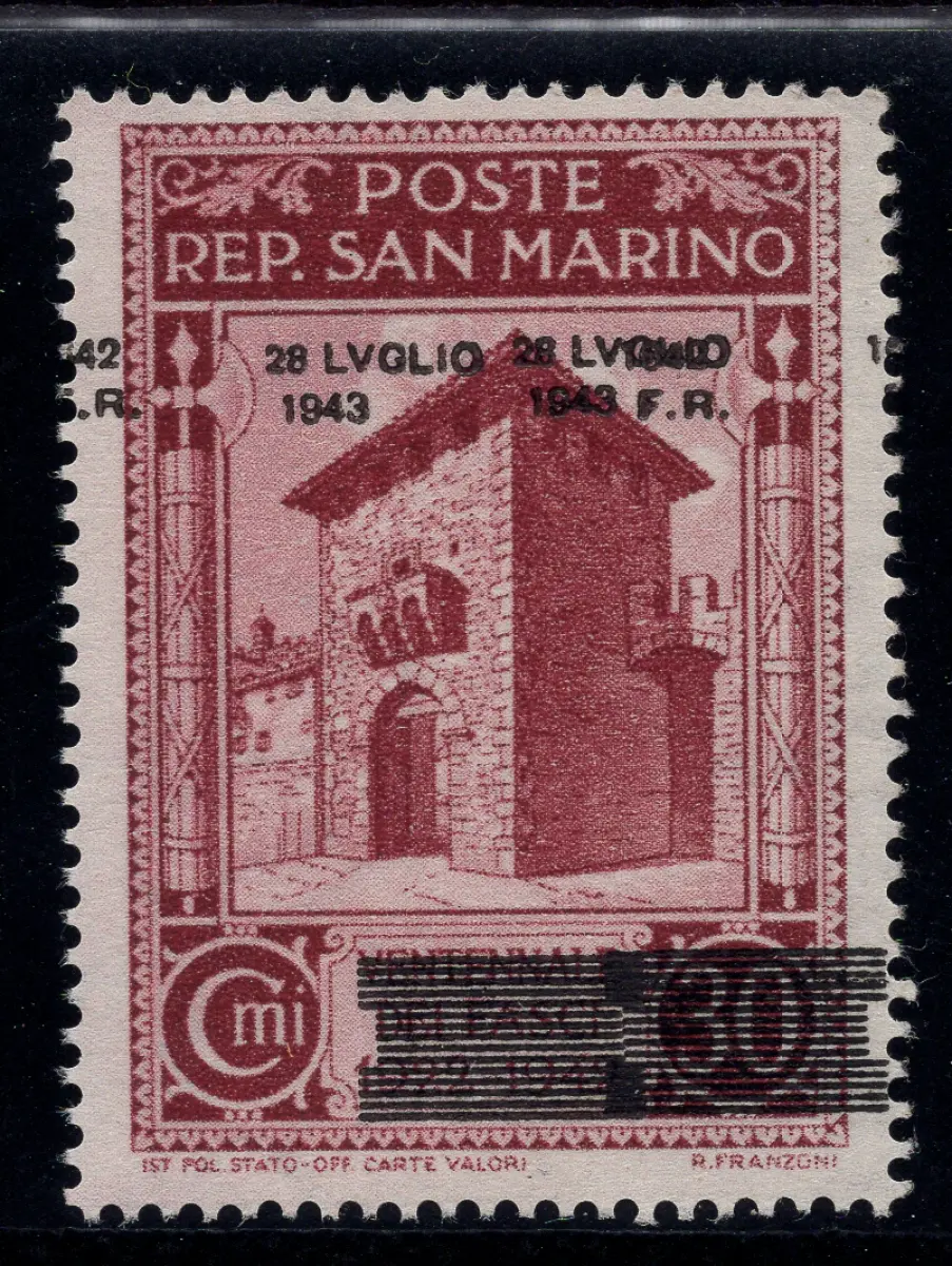 MNH - Vollgummi - Fall des Faschismus Cent. 30 n. 257a Doppelaufdruck davon ein stark verschobener (zu Pferd) neuer perfekter Vollgummi - Kat. euro 45 Cod. 3112/WEB