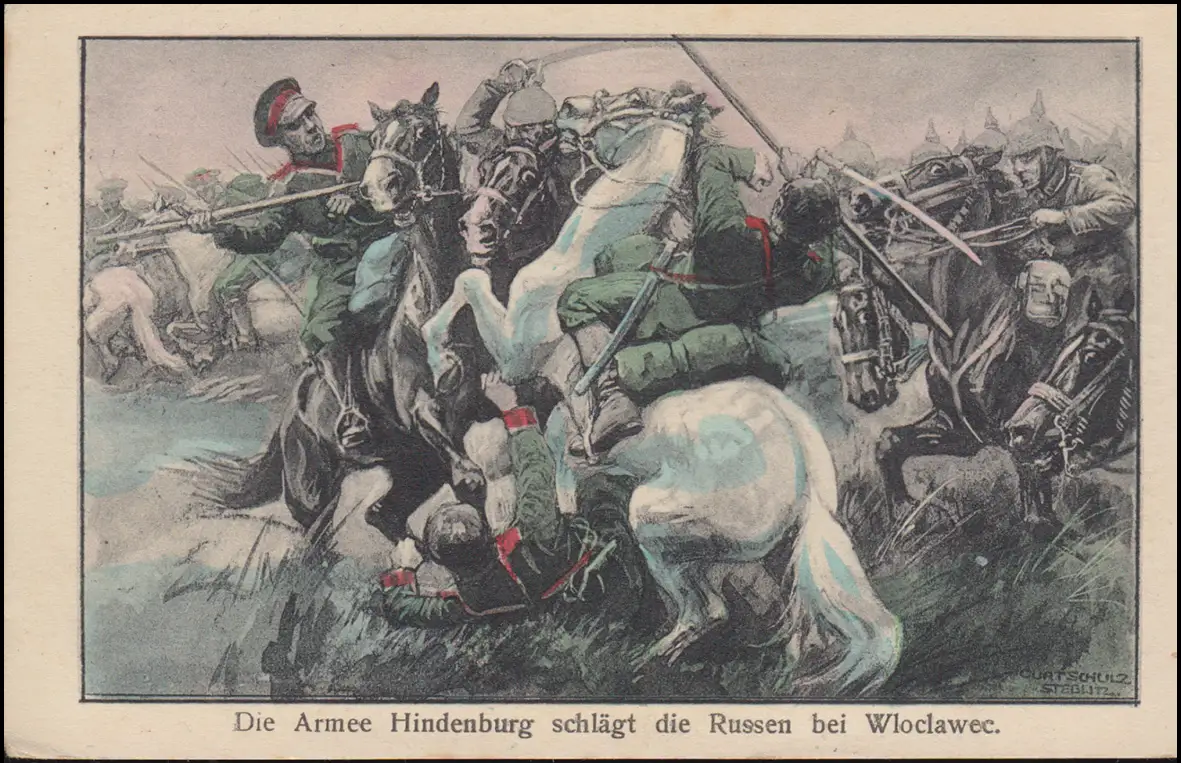Künstlerkarte Curt Schulz, Steglitz (Verlag Karl Voegels): Die Armee Hindenburgs schlägt die Russen bei Wloclawek