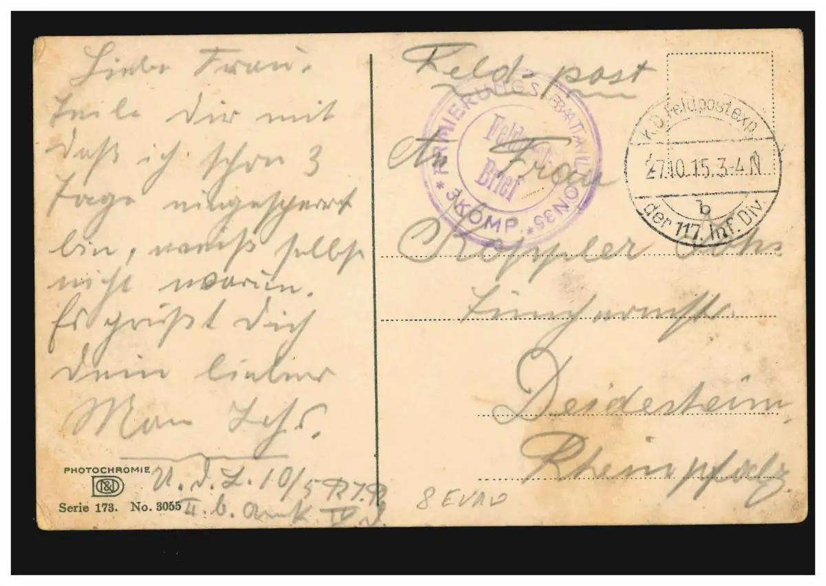 Feldpost BS Armierungs-Bataillon 35, Feldpost 17. Div. 27.10.15 auf AK Waterland