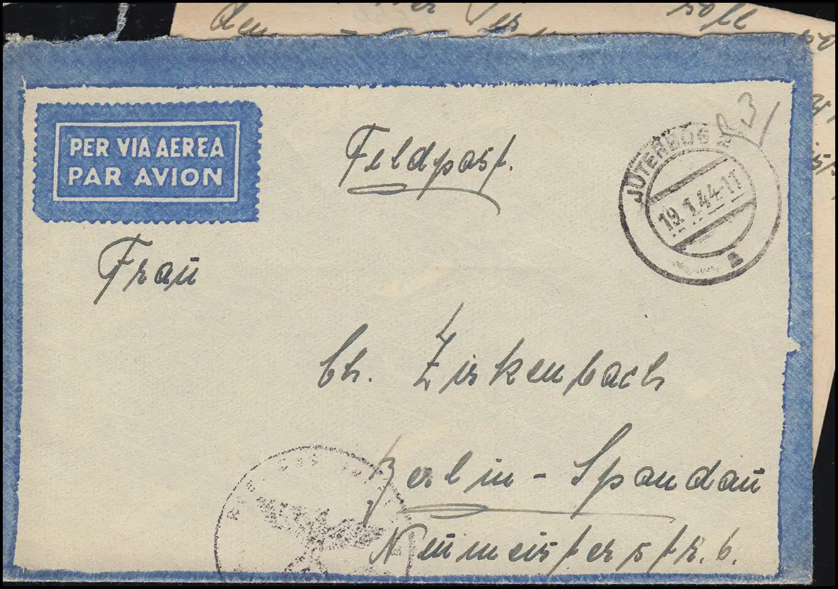 Feldpost Briefstempel Reserve-Lazarett Jüterbog Brief JÜTERBOG 19.1.44 n. Berlin