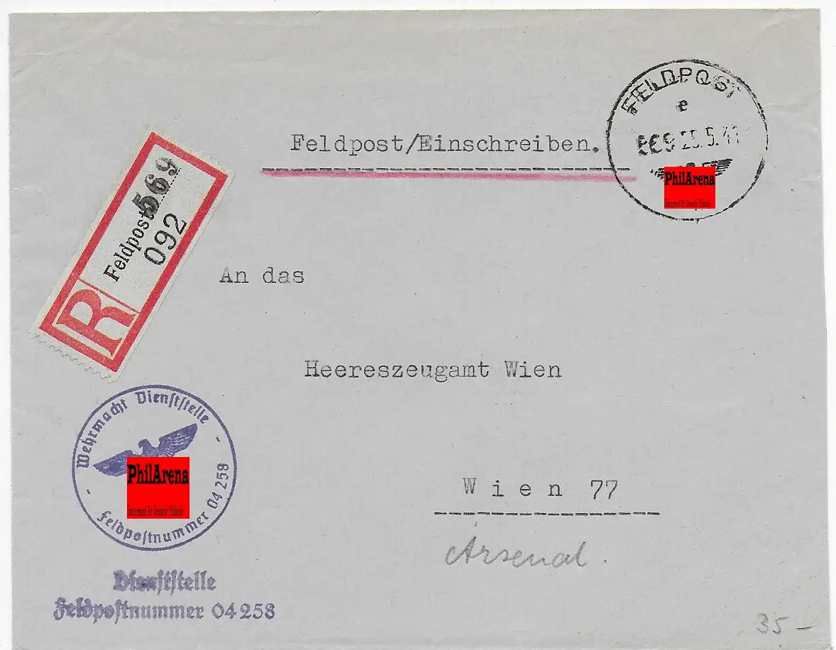 Feldpost: Einschreiben FPNr. 04258 nach Wien 1941
