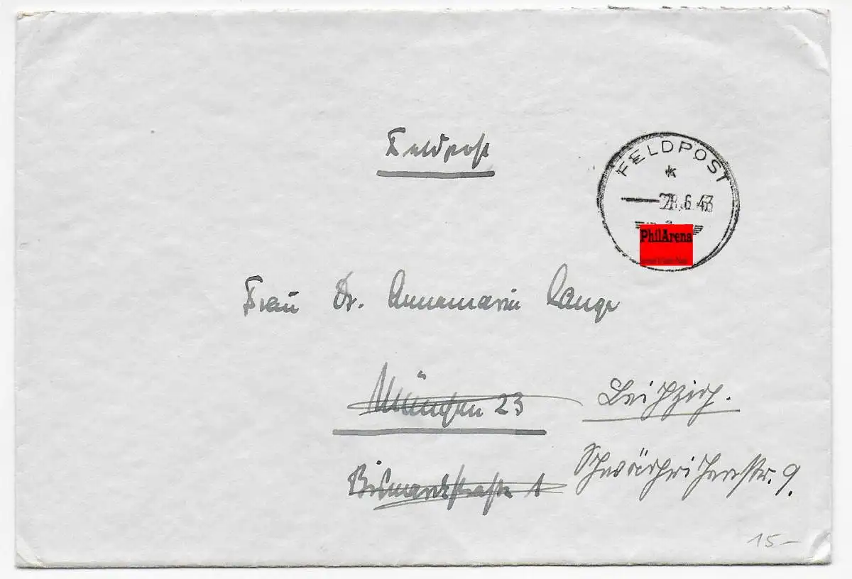 Feldpost: FPNr. 07276 von 1943 nach München, weiter nach Leipzig