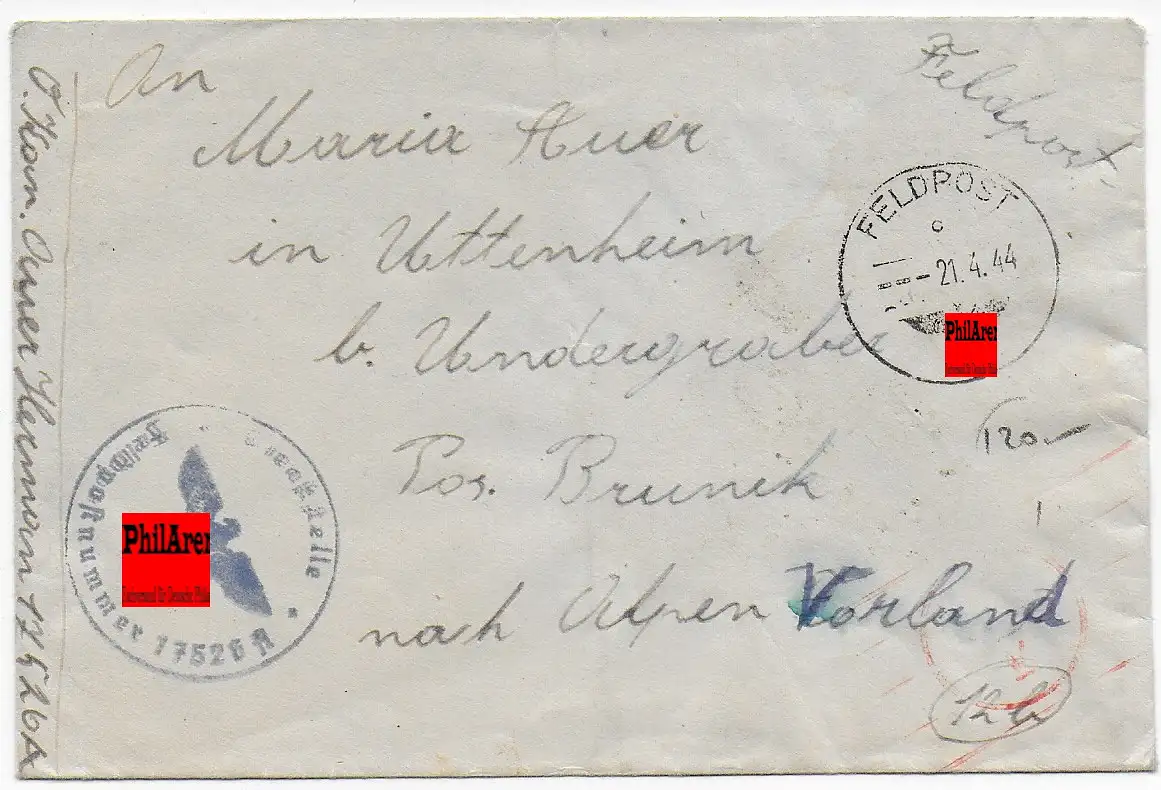 Feldpost: FPNr. 17526A eines Südtirolers nach Italien - Bozen, 1944, OKW Zensur