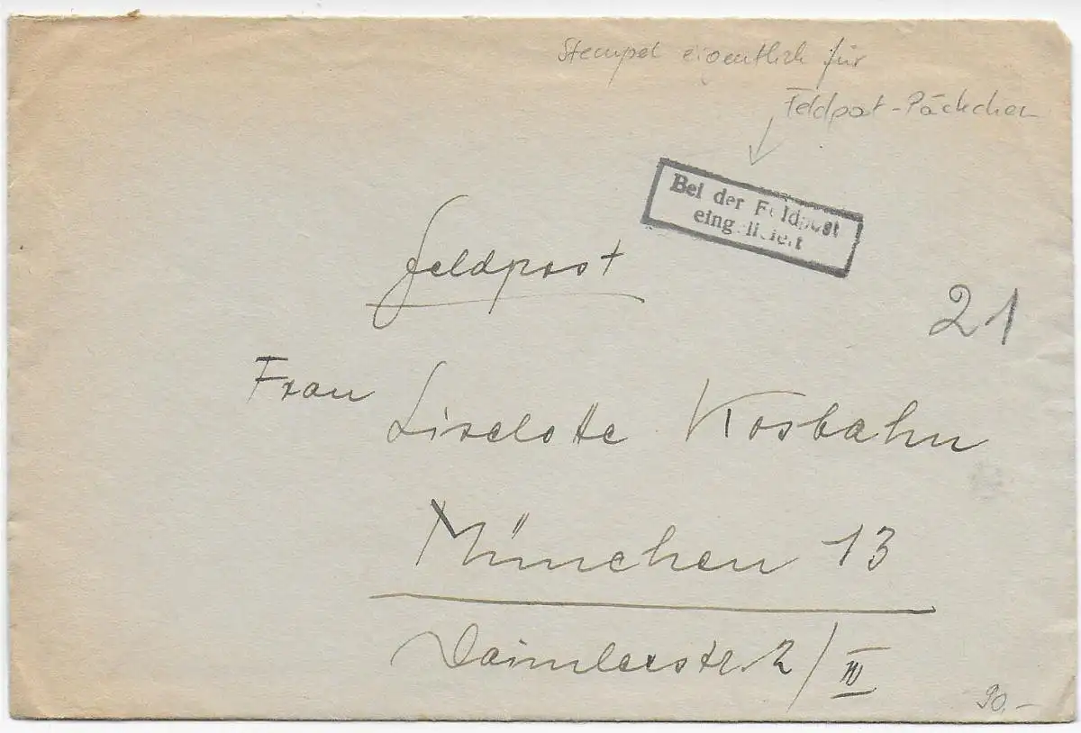 Feldpost: FPNr. 42764, Einlieferungsstempel nach München