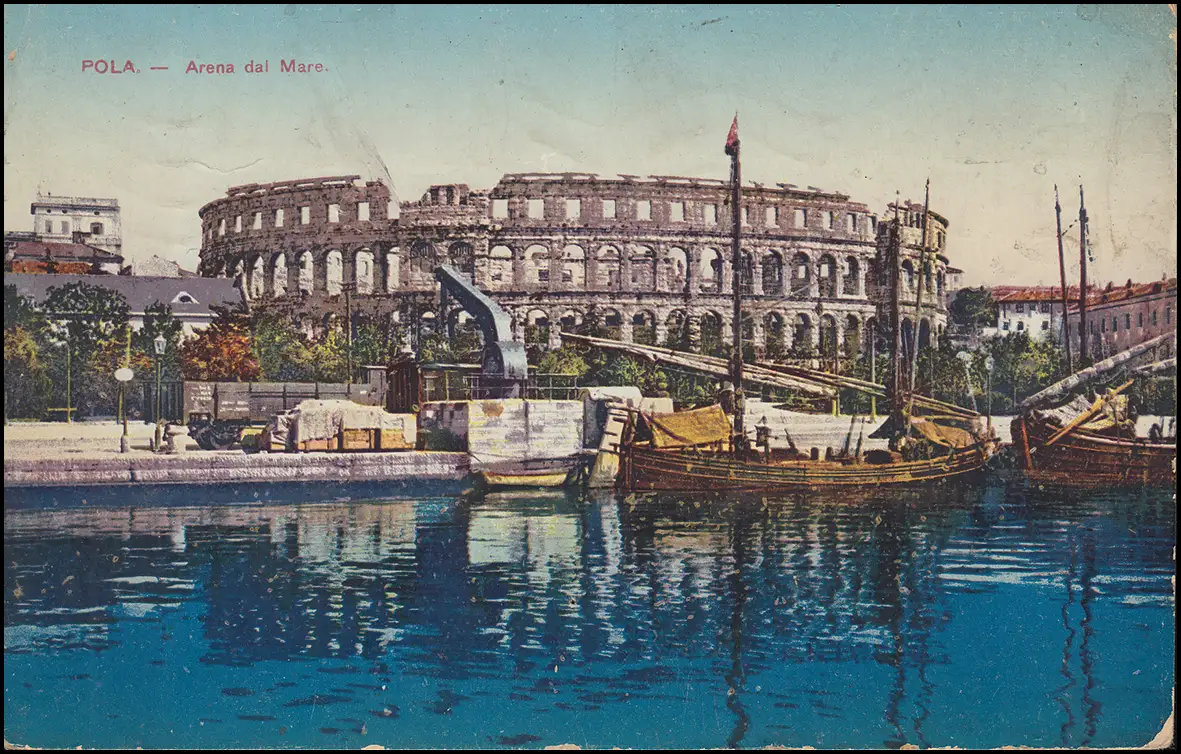auf Ansichtskarte: Pola - Das Amphitheater, Ecken bestoßen