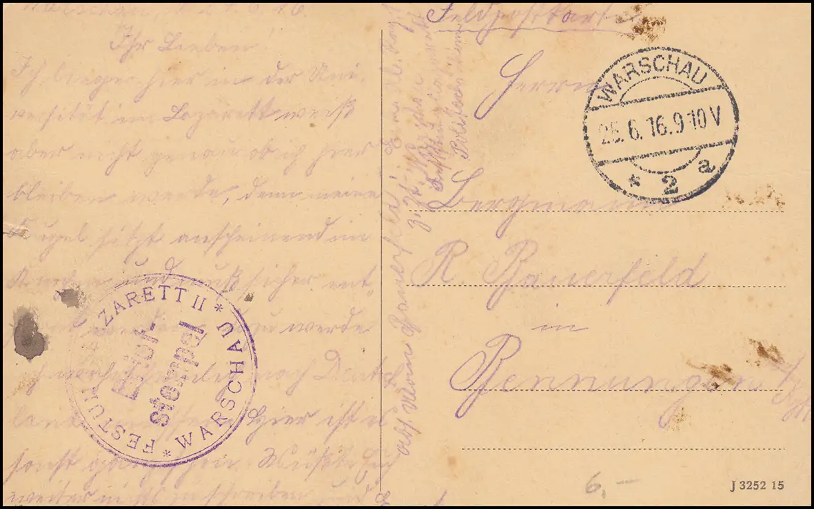 Feldpost Festungslazarett Warschau 25.6.16 auf AK Philharmonie