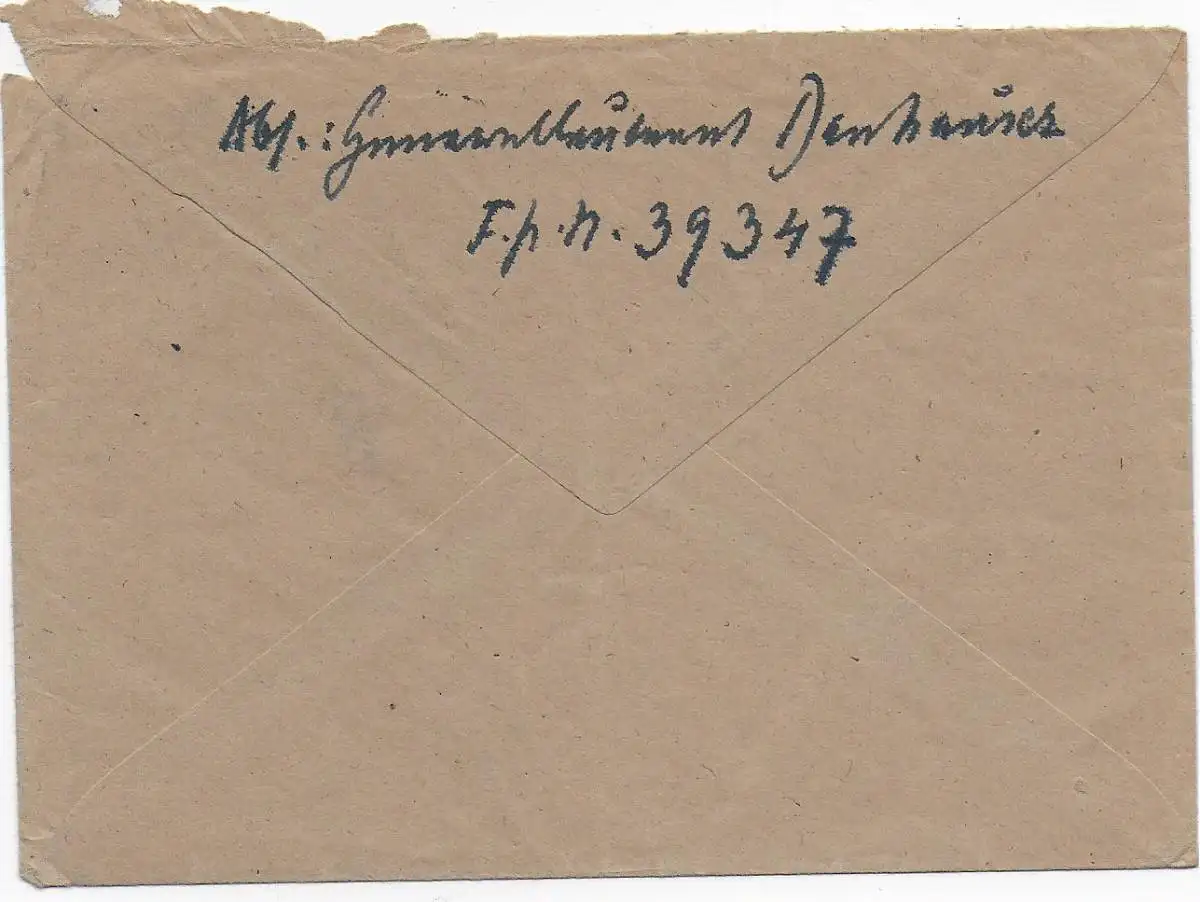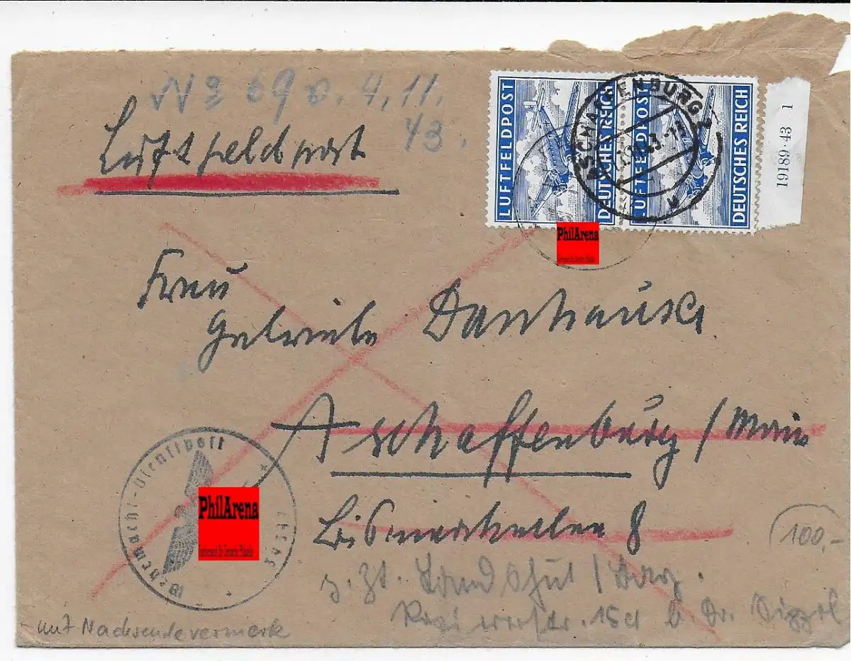 Feldpost: Luftfeldpost FPNr. 39347 nach Aschaffenburg und zurück, Unterrand Nr.