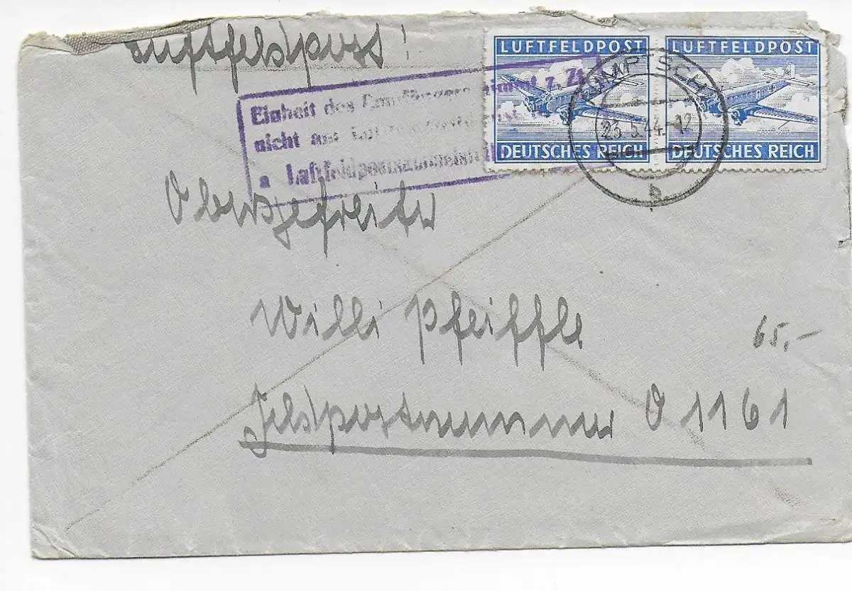Feldpost: Luftfeldpost Nimptsch an FPNr. 01161, Hinweisstempel 1944