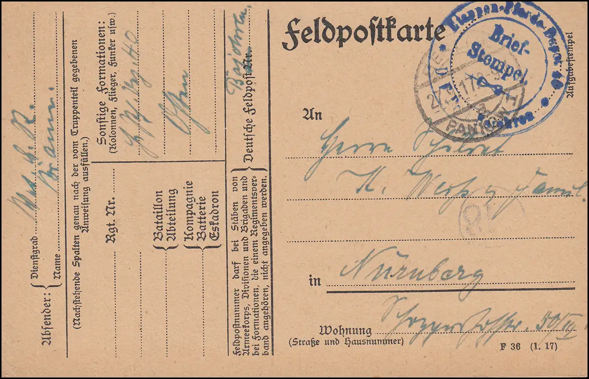 Feldpost S.B.-Stempel Etappen-Pferde-Depot 40, BERLIN-PANKOW 27.9.1917