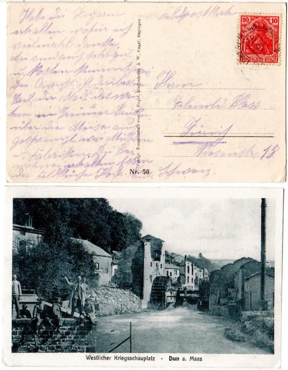 Ins Ausland adressierte Feldpost musste frankiert werden. Hier AK v. Dun a. Maas n. Zürich.