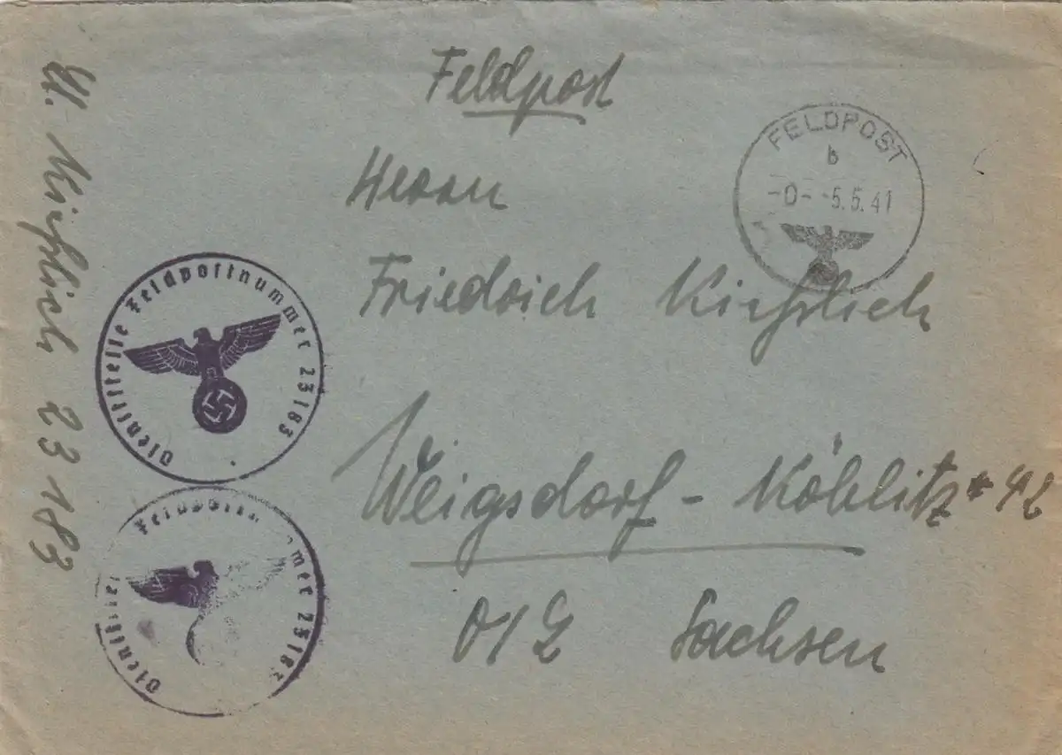 Feldpostbrief 1941, FP Nr. 23183 nach Weigsdorf mit Briefinhalt