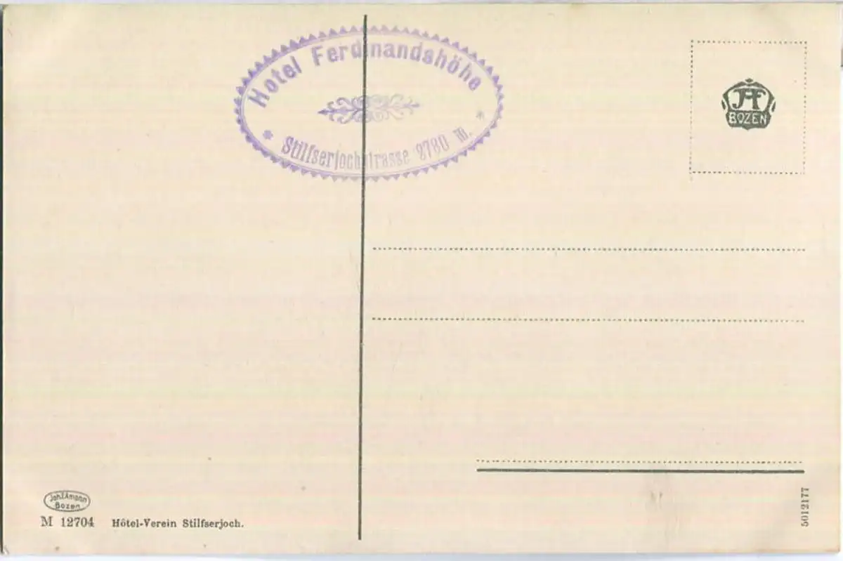 Ferdinandshöhe an der Stilfserjochstrasse mit Aufstieg zur Geisterspitze - Verlag Joh. F. Amonn Bozen