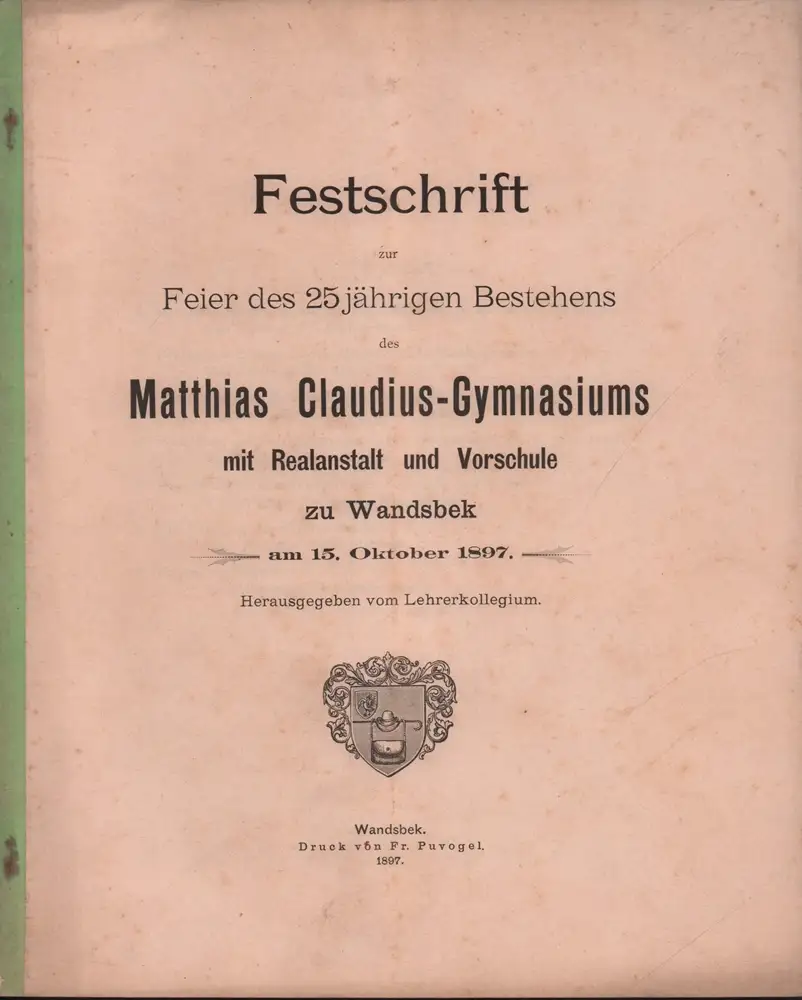 Festschrift zur Feier des 25jährigen Bestehens des Matthias-Claudius-Gymnasiums mit Realanstalt und Vorschule zu Wandsbek am 15. Oktober 1897. Hrsg. vom Lehrerkollegium.