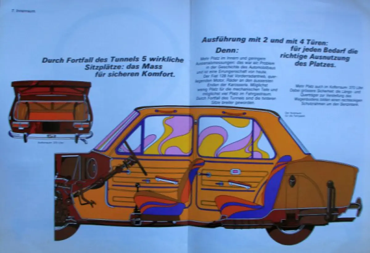 Fiat 128 Modellprogramm 1970 "Perche" Automobilprospekt (10373)