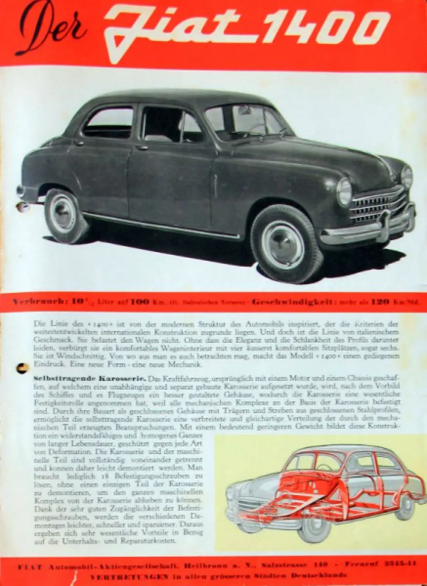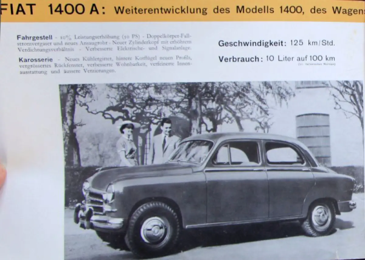 Fiat 1400 A Modellprogramm 1954 Automobilprospekt (10314)