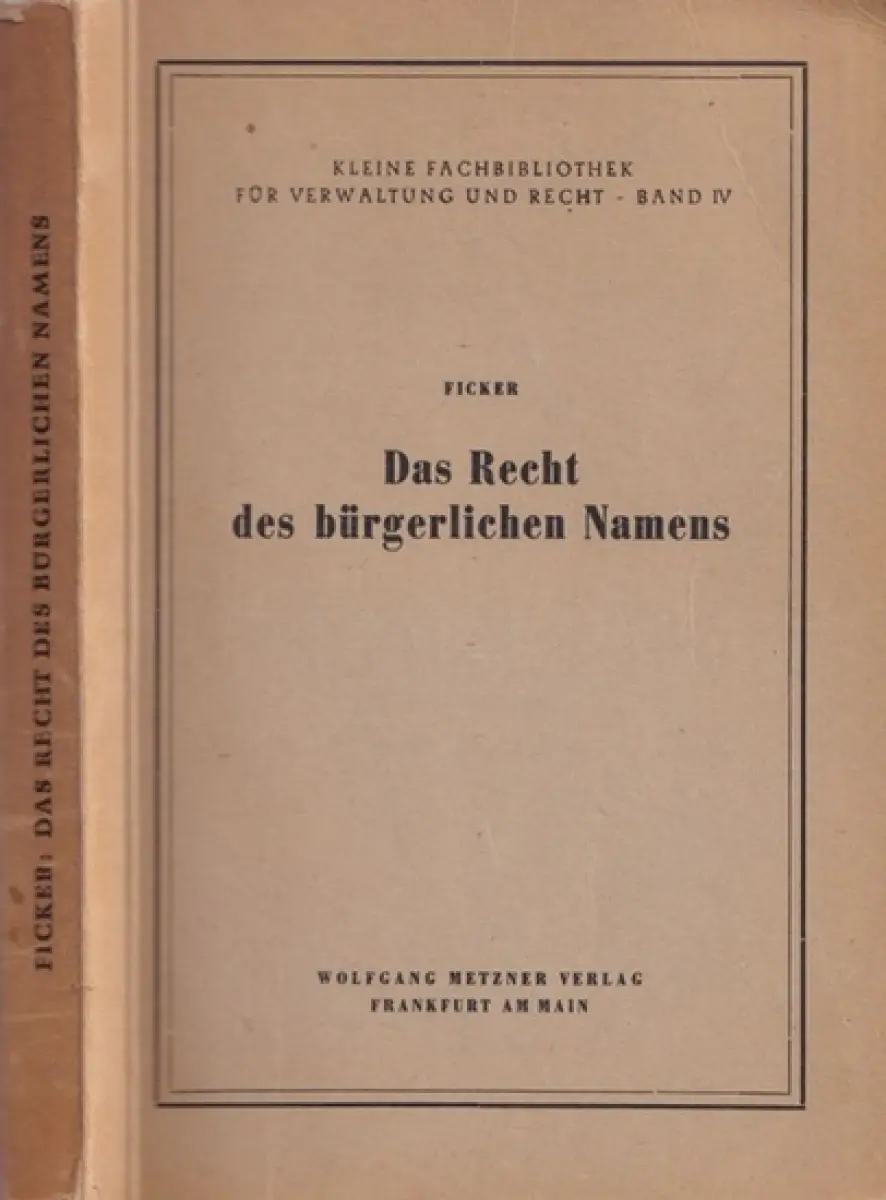 Ficker, Hans G: Das Recht des bürgerlichen Namens (= Kleine Fachbibliothek für Verwaltung und Recht, Band IV).
