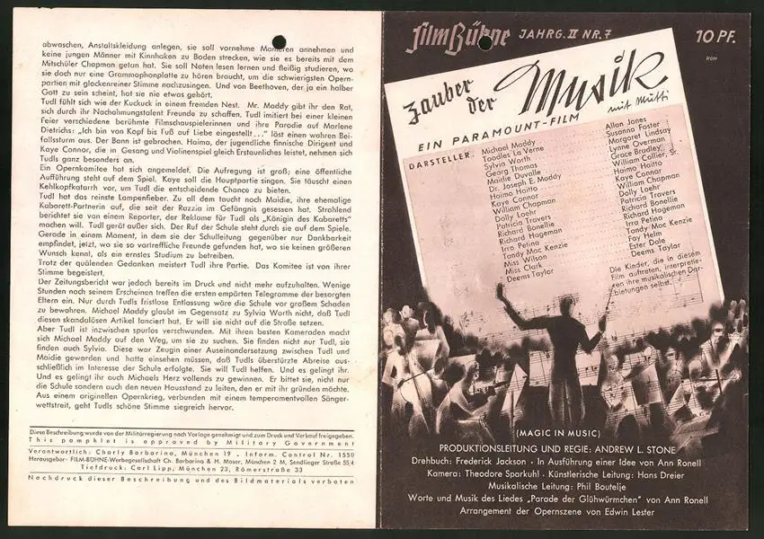 Filmprogramm Filmbühne Nr. 7, Zauber der Musik, Allan Jones, Susanna Foster, Regie: Andrew L. Stone