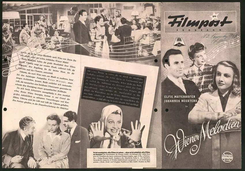 Filmprogramm Filmpost Nr. 279, Wiener Melodien, Elfie Mayerhofer, Johannes Heesters, Regie: Theo Lingen