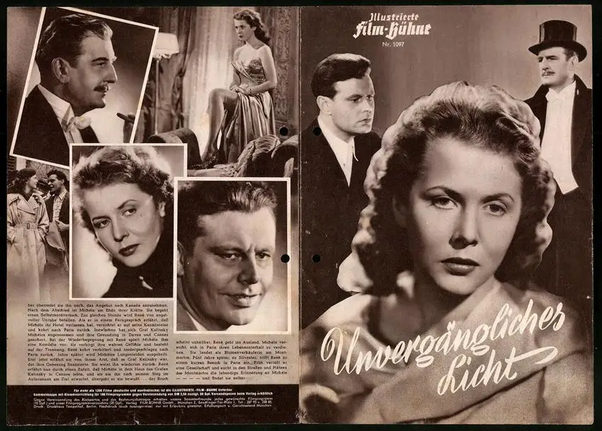 Filmprogramm IFB Nr. 1097, Unvergängliches Licht, Rudolf Forster, Hilde Hildebrand, Regie: Arthur Maria Rabenalt