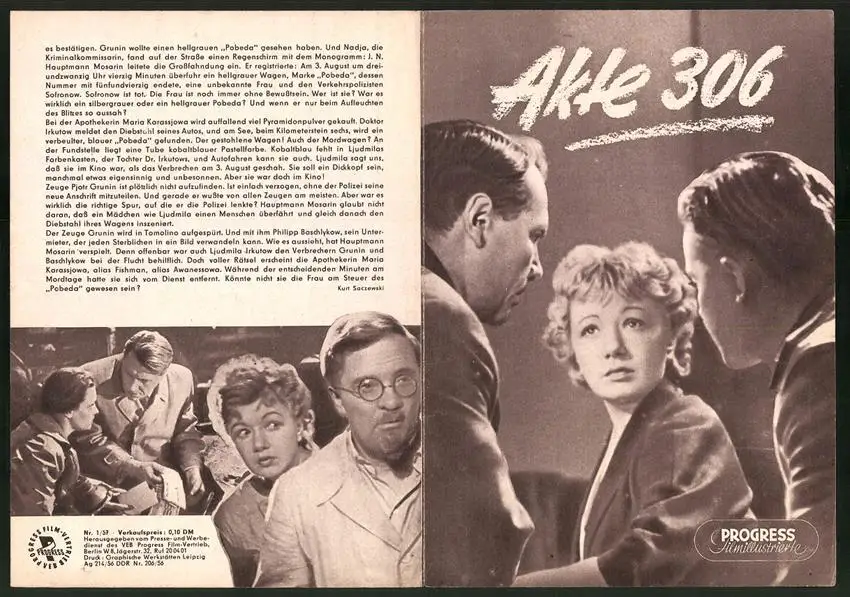 Filmprogramm PFI, Akte 306, B. Bitkow, T. Pilezkaja, M. Bernes, Regie: Anatoli Rybakow