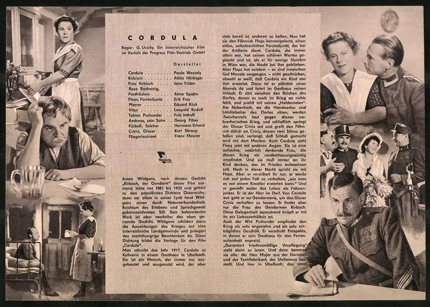 Filmprogramm PFI, Cordula, Paula Wessely, Attila Hörbiger, Regie: G. Ucicky