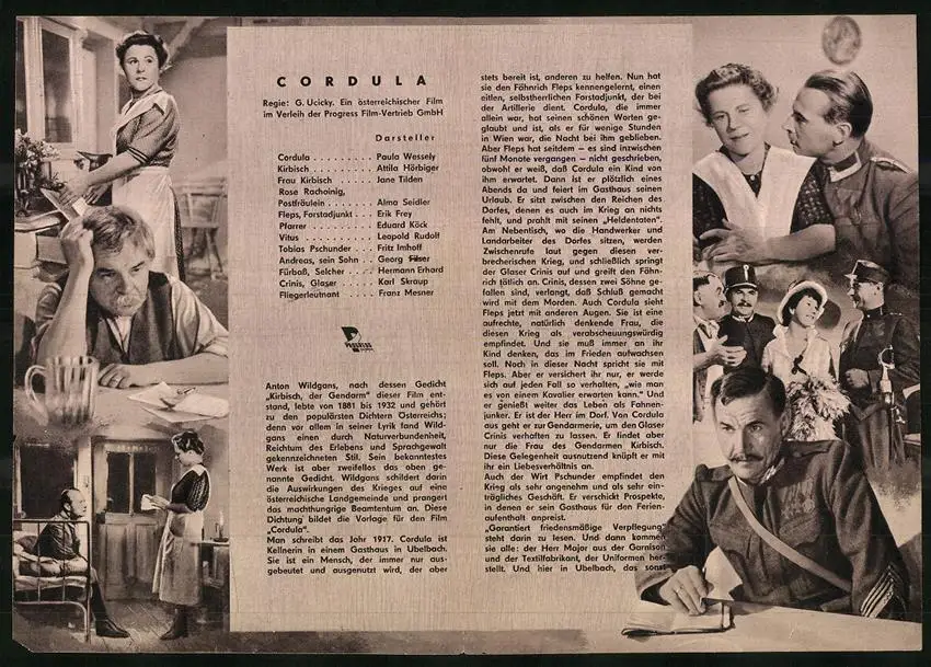 Filmprogramm PFI, Cordula, Paula Wessely, Attila Hörbiger, Regie: G. Ucicky