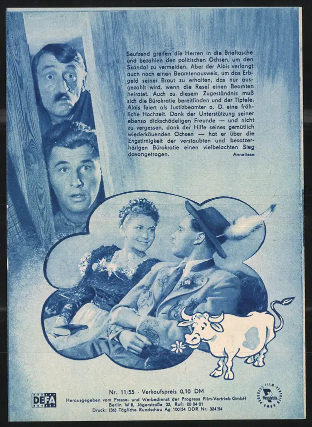Filmprogramm PFI Nr. 11 /55, Der Ochse von Kulm, Ferdinand Anton, Lore Frisch, Regie: Martin Hellberg