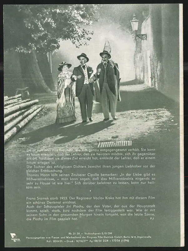 Filmprogramm PFI Nr. 21 /54, Mond über dem Fluss, Zdenek Stepanek, Zdenka Baldova, Regie: Vaclav Krska