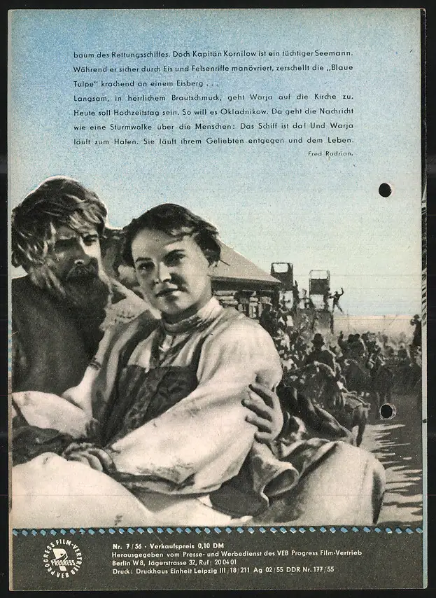 Filmprogramm PFI Nr. 7 /56, Im Eismeer verschollen, N. Krjutschkow, M. Kusnezow, Regie: J. Jegorow