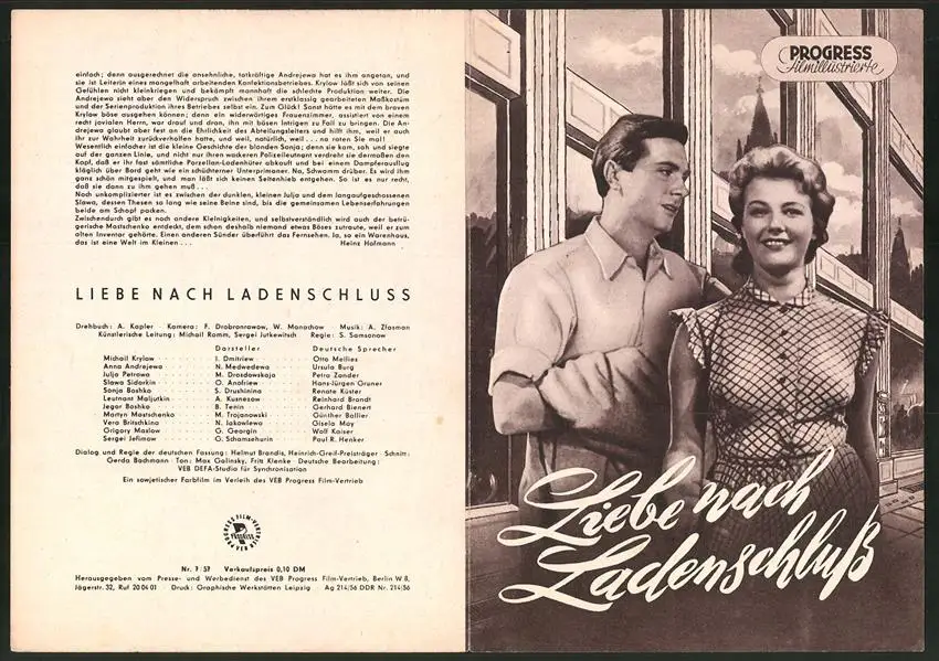 Filmprogramm PFI Nr. 7 /57, Liebe nach Ladeschluss, I. Dmitriew, N. Medwedewa, Regie: S. Samsonow