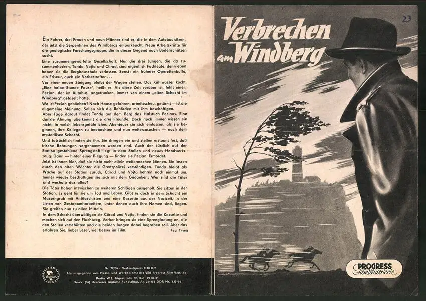 Filmprogramm PFI Nr. 72 /56, Verbrechen am Windberg, Josef Vinklar, Stanislav Fiser, Regie: Jiri Sequens