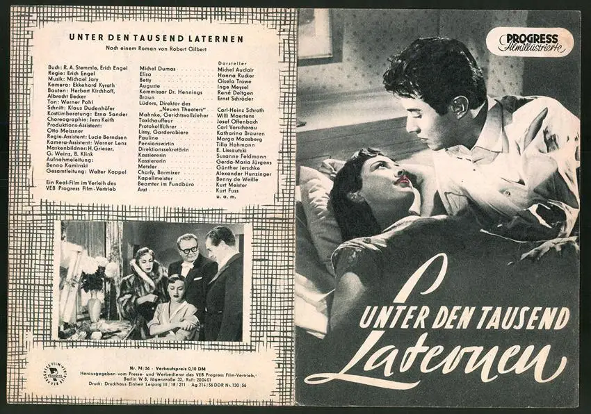 Filmprogramm PFI Nr. 74 /56, Unter den tausend Laternen, Michel Auclair, Hanna Rucker, Regie: R. A. Stemmle
