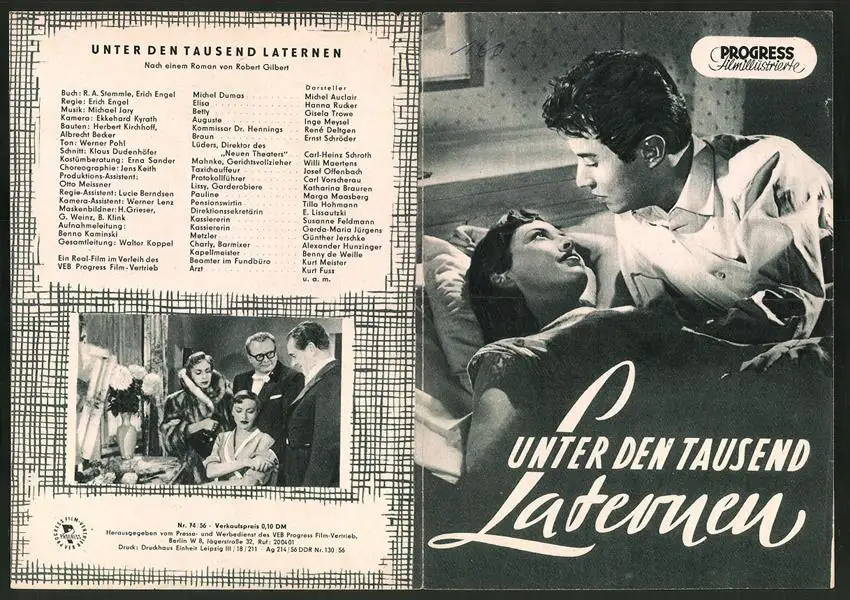 Filmprogramm PFI Nr. 74 /56, Unter tausend Laternen, Michel Auclair, Hanna Rucker, Regie: R. A. Stemmle