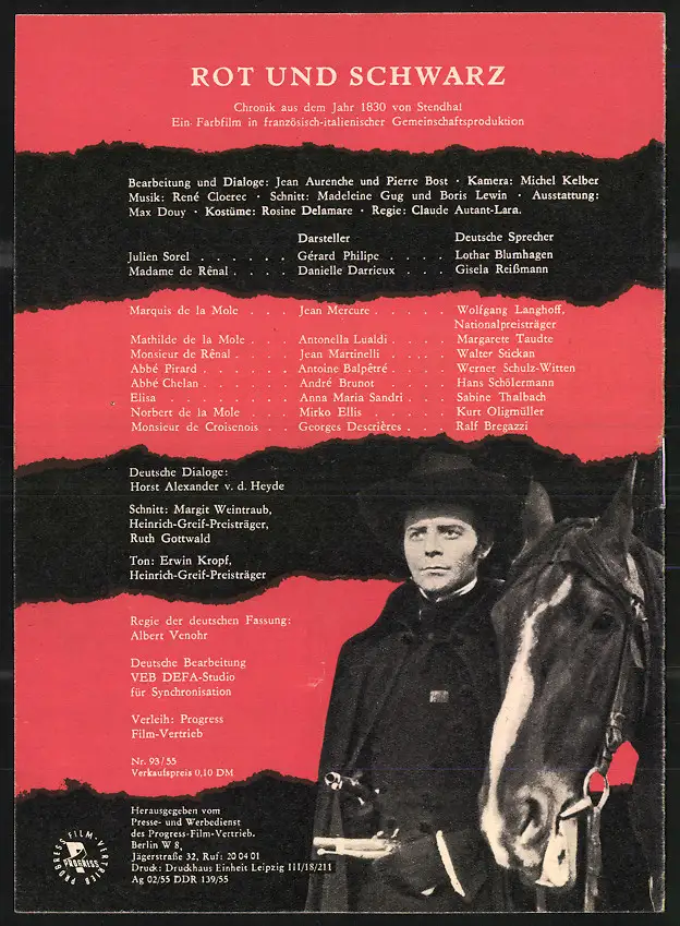 Filmprogramm PFI Nr. 93 /55, Rot und Schwarz, Danielle Darrieux, Gérard Philipe, Regie: Clauda Autant-Lara