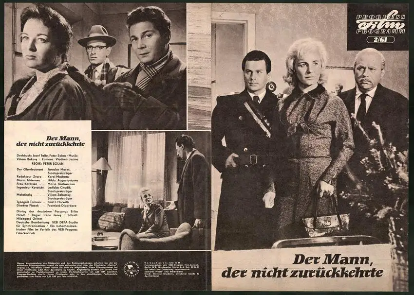 Filmprogramm PFP Nr. 2 /61, Der Mann, der nicht zurückkehrte, Jaroslav Mares, Karol Machata, Regie: Peter Solan