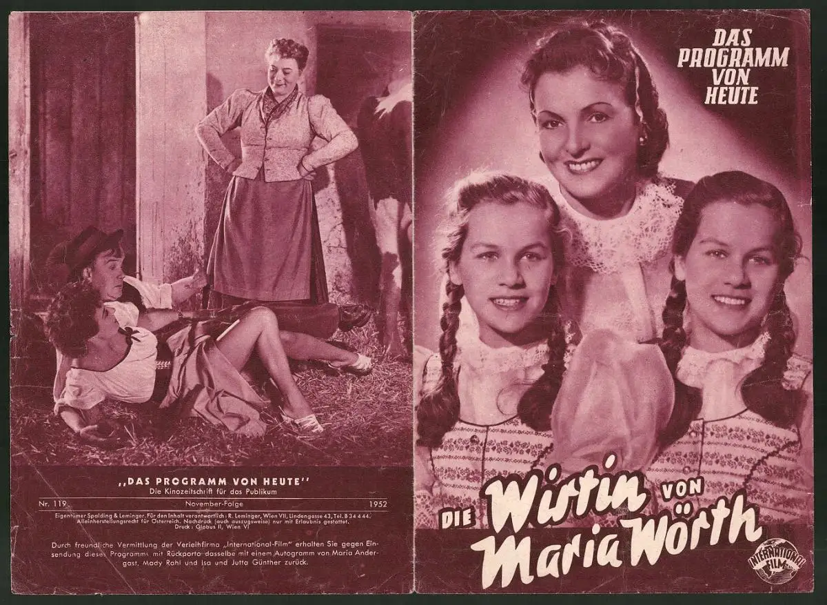 Filmprogramm Programm von Heute, Die Wirtin von Maria Wörth, Jutta u. Isa Günther, Maria Andergast, Regie: E. v. Borsody